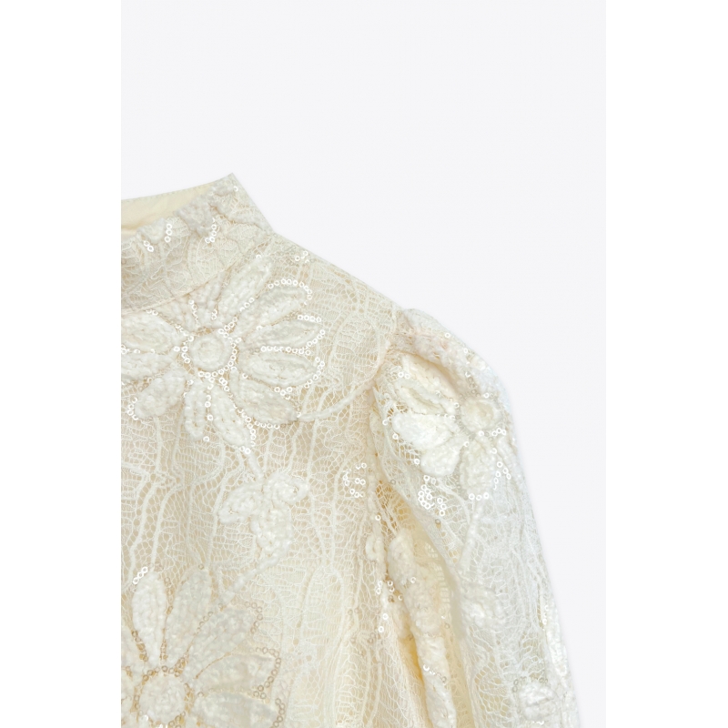 Blouse fleurs paillettes