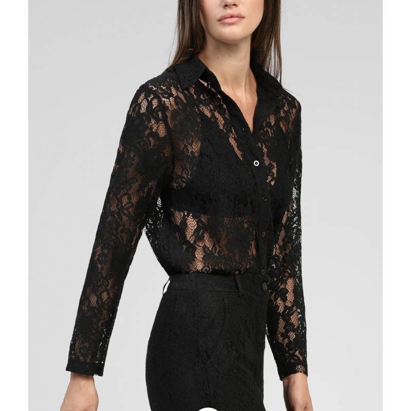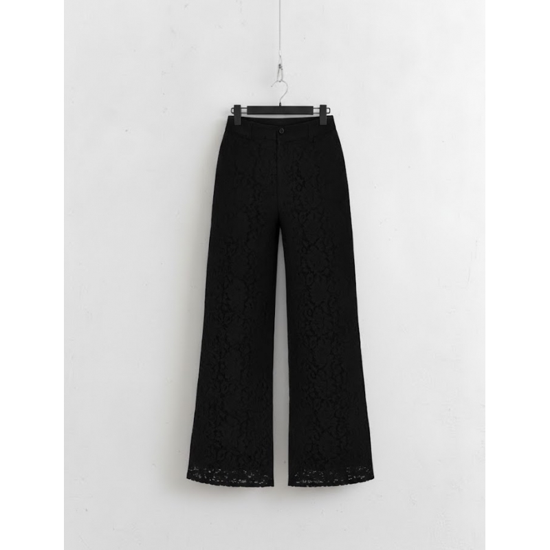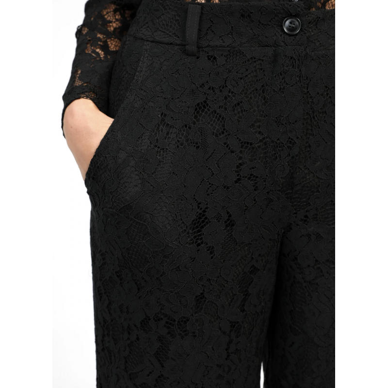 PantalonTissu dentelleCoupe largeTaille haute, Taille élastique dos, Taille plate devantLongueur standardDentelleBoutonnage à l'avant