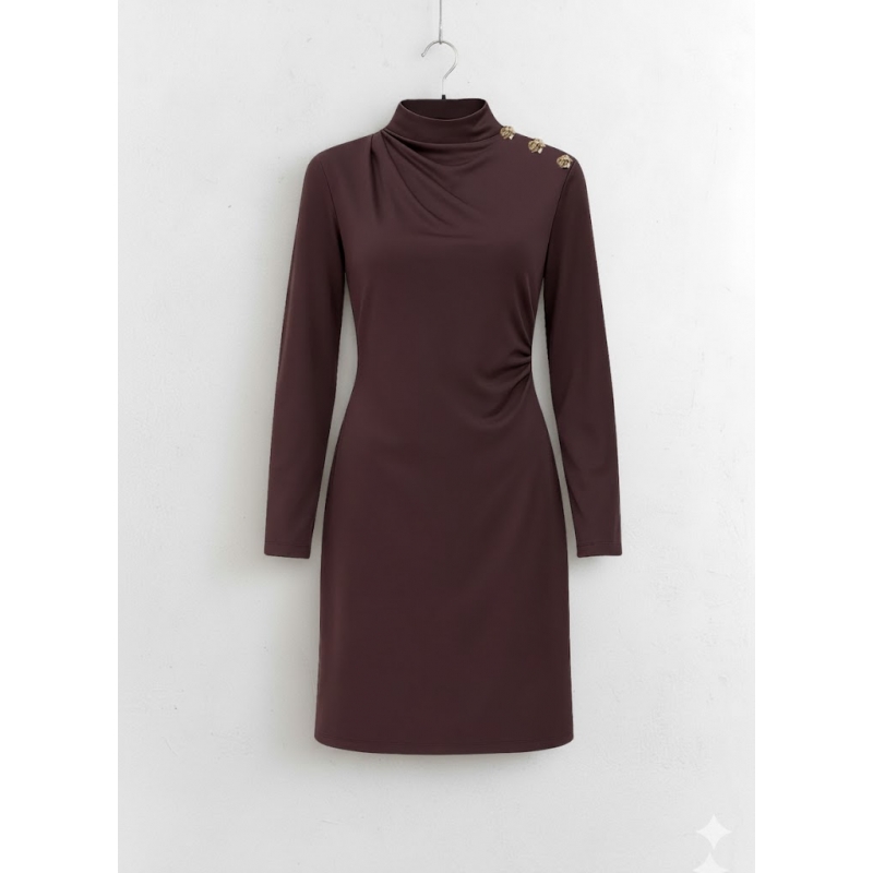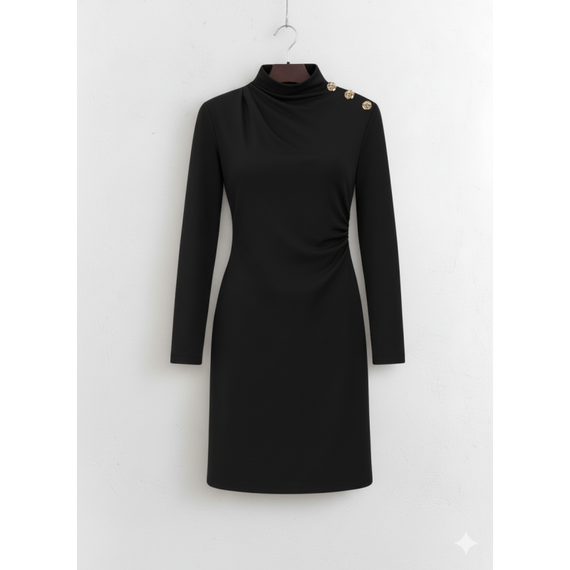 RobeCol montant fluideManches longuesCoupe ajustée, Coupe asymétriqueTaille normaleBoutons dorés